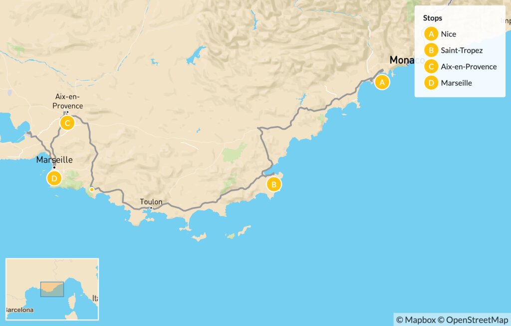 Map of Luxury Getaway to Provence & the French Riviera – 10 Days
