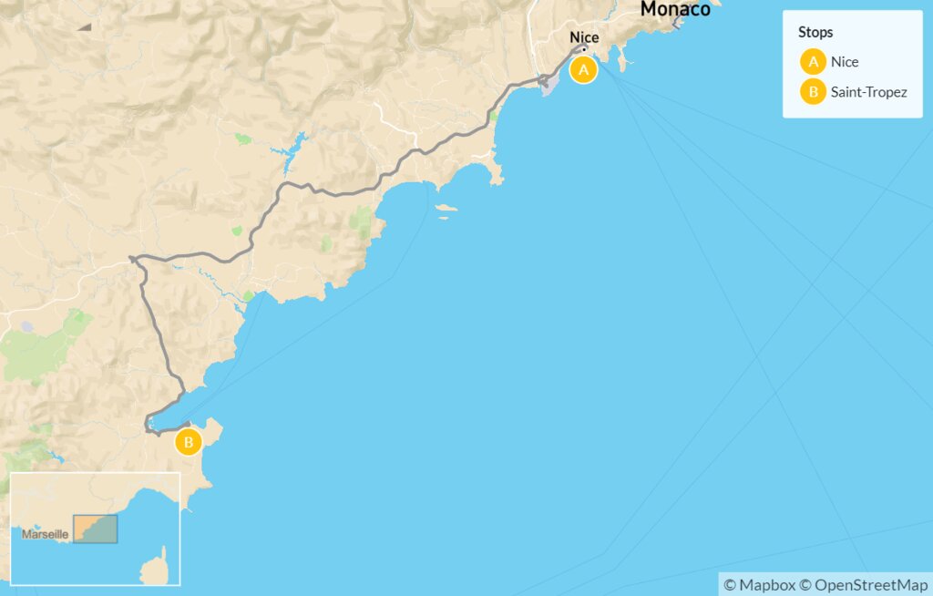 Map of Luxury Getaway to the French Riviera: Nice & Saint-Tropez – 7 Days
