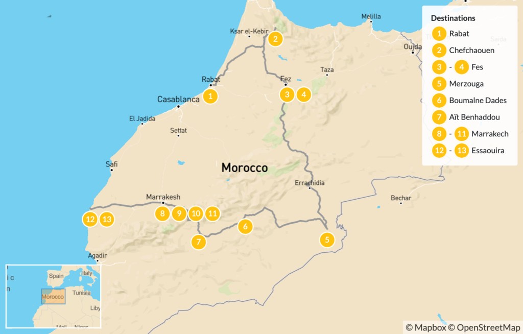 Map of Luxury Grand Tour of Morocco – 14 Days