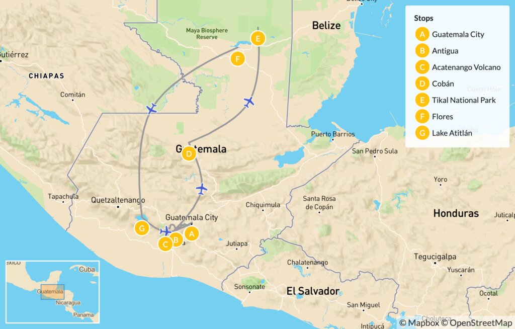 Map of Luxury Guatemala Helicopter & Cultural Tour – 13 Days