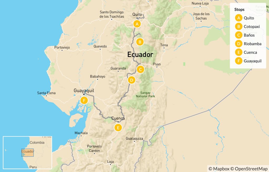 Map of Luxury Hacienda Hop Around Ecuador’s Mountains & Coast – 10 Days