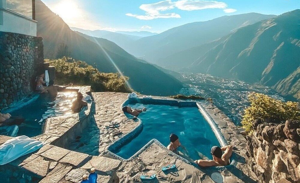 Upon arrival, you’ll check into Luna Volcán Adventure Spa. Get ready for more hacienda-style living, as this idyllic property sits on a hill with prime views of Baños and the surrounding Andes. It offers an array of themed rooms and suites tailored to couples, families, friend groups, and solo adventurers. They’re all equipped with plush beds; some have garden and Andes views from private terraces. Expect even better views when you head up to the pool area, where you can take a dip or soak in the Jacuzzi.