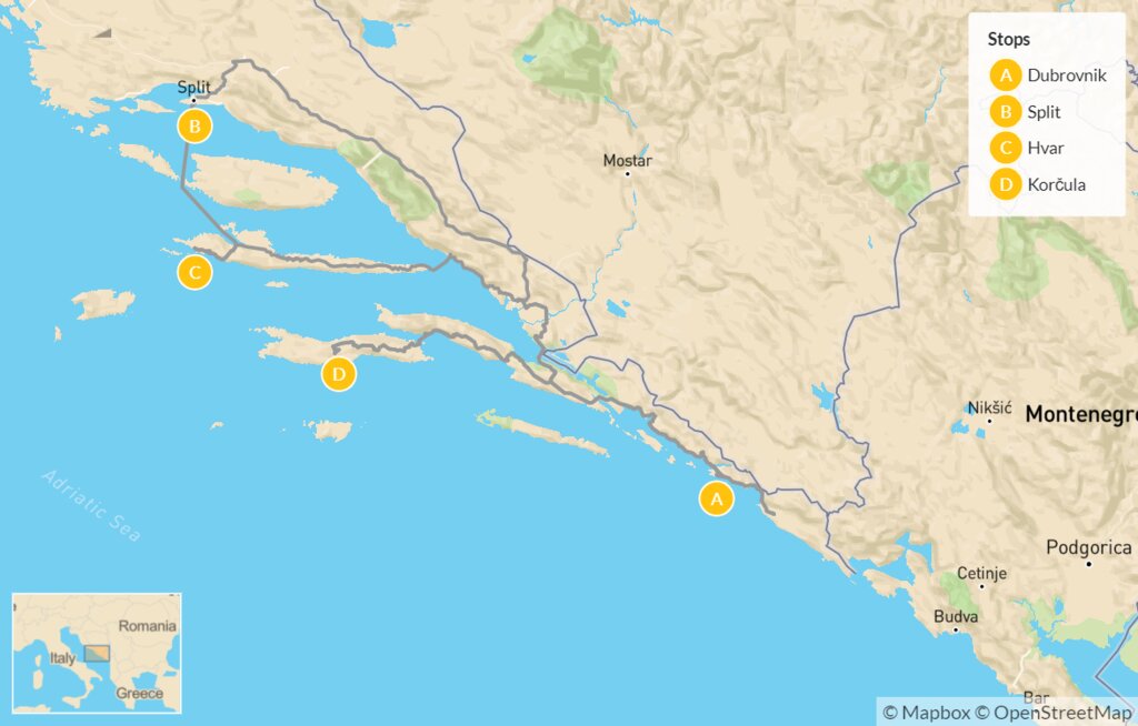 Map of Luxury Highlights of Croatia’s Dalmatian Coast – 7 Days
