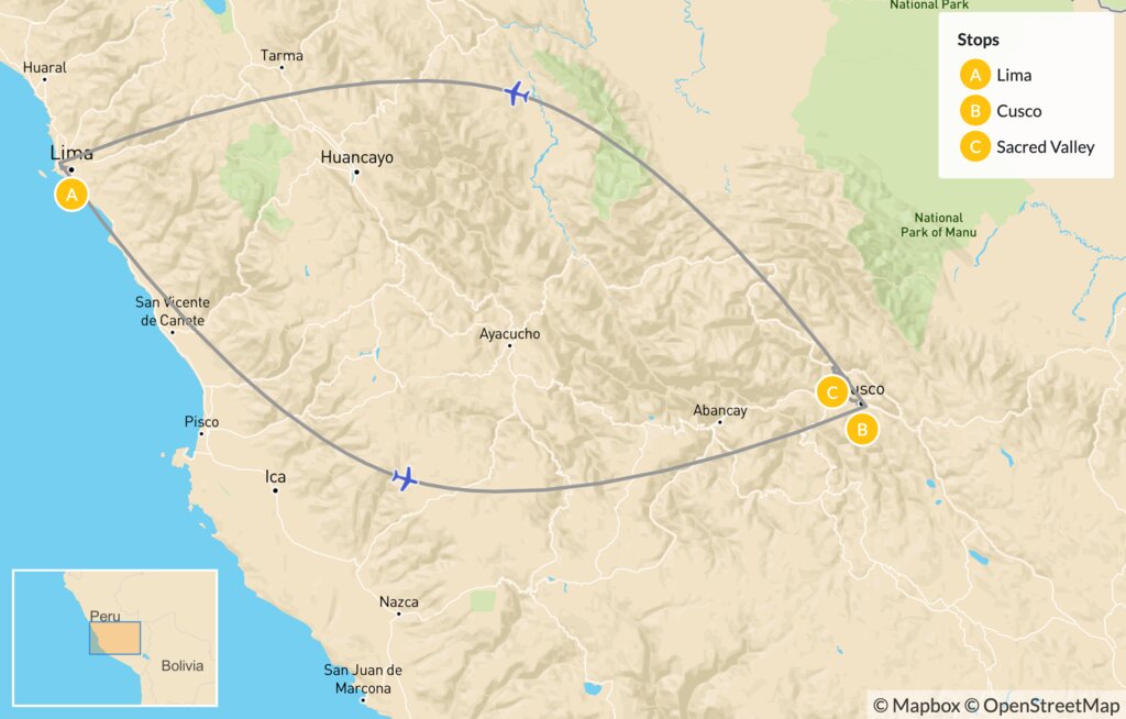 Map of Luxury Highlights of Peru: Lima, Cusco & the Sacred Valley – 7 Days