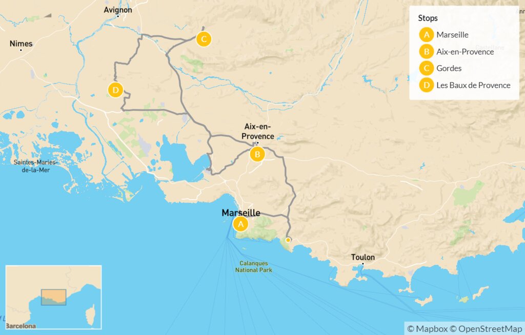 Map of Luxury Highlights of Provence: Aix, Gordes & Les Baux – 7 Days