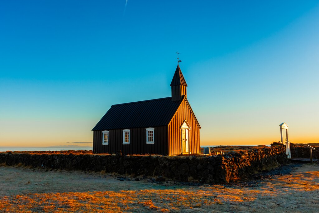 Your first stop is the striking 19th-century Búðakirkja, an isolated, much-photographed black wooden chapel. Make your way across the lava fields of Búðahraun and the Búðaklettur crater, and continue along the coast, pausing at the tiny villages of Arnastapi and Hellnar. There’s plenty to admire here, with the famous Lóndrangar lava formations and the evocative black-sand beach at Djúpalónssandur. Follow the small trail along the cliffs, and you’ll see the impressive Dritvík Cove before driving to the Saxhóll crater for sweeping views of the Atlantic.