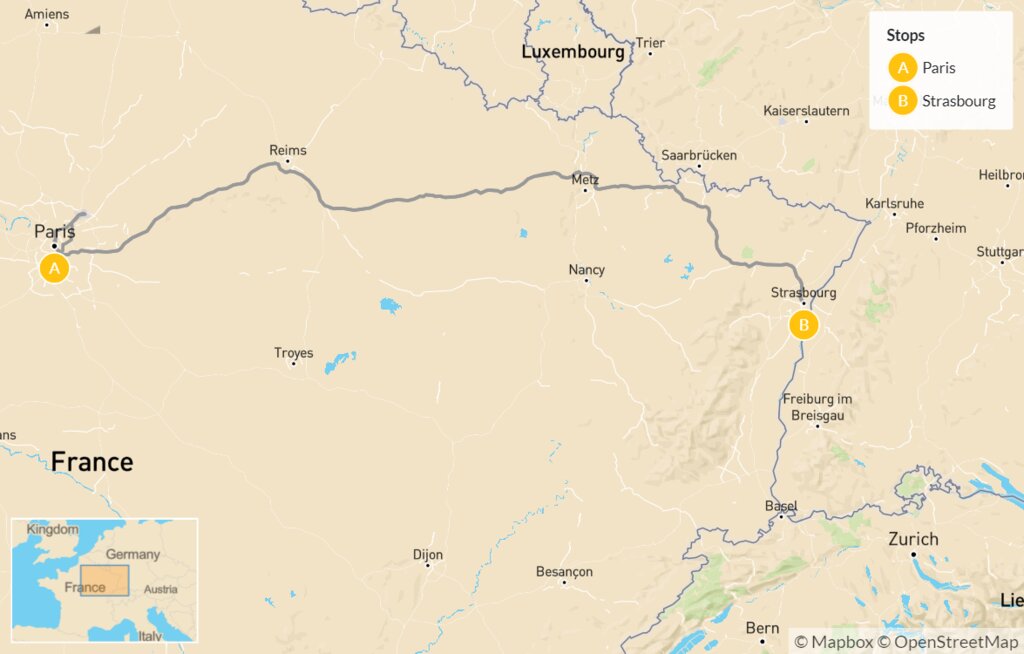 Map of Luxury Holiday Trip to Paris & Strasbourg – 7 Days