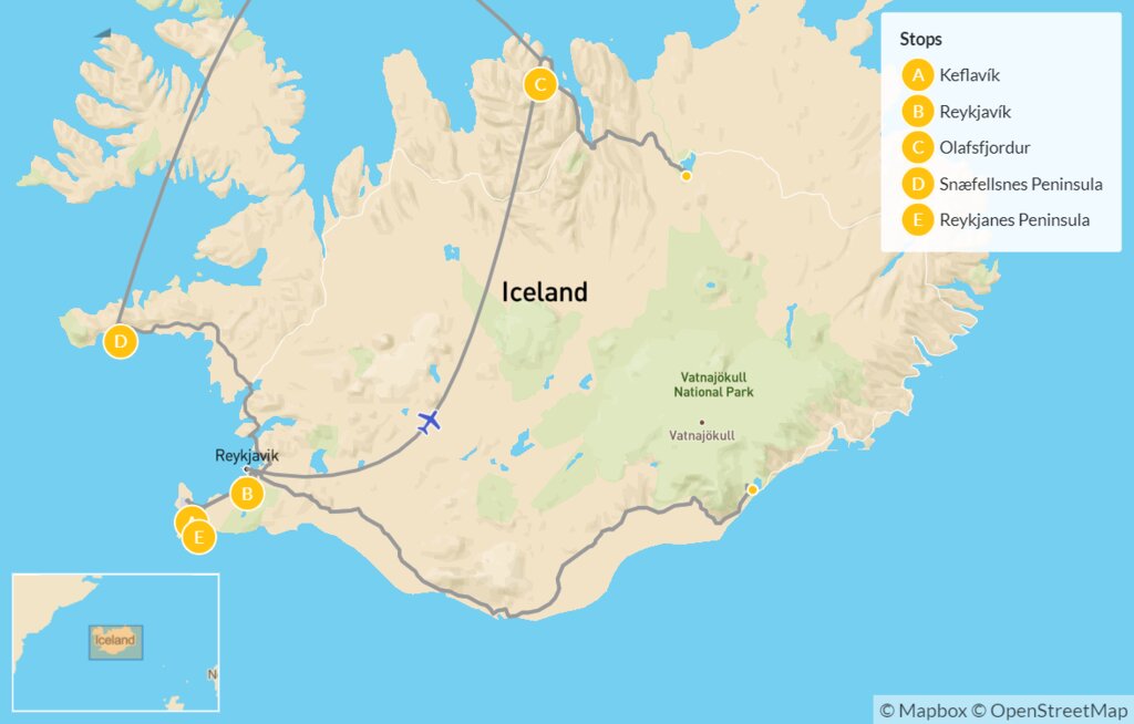 Map of Luxury Iceland From Above: A Helicopter Tour Across the Land of Fire & Ice – 10 Days