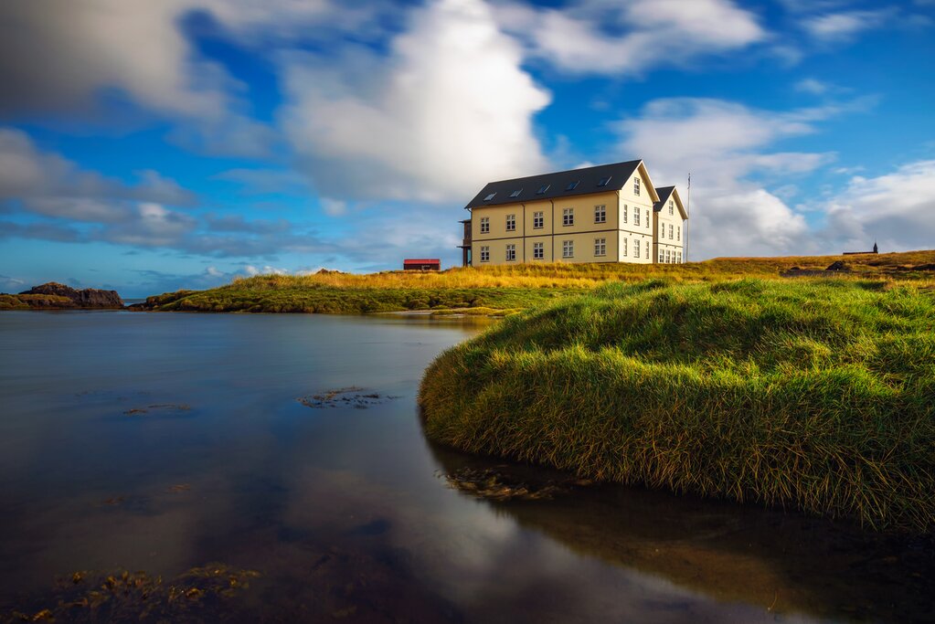Today is yours to explore the enigmatic Snæfellsnes Peninsula with your private guide. Often referred to as “Little Iceland,” the peninsula is famous for its variety of landscapes and natural wonders, containing all of the country’s diversity and natural wonders within 56 miles (96 km). Almost immediately, you’ll see nearby Búðakirkja, a much-photographed black wooden chapel just minutes from your hotel. Make your way across the lava fields of Búðahraun and the Búðaklettur crater, and continue along the coast, pausing at the tiny villages of Arnastapi and Hellnar.