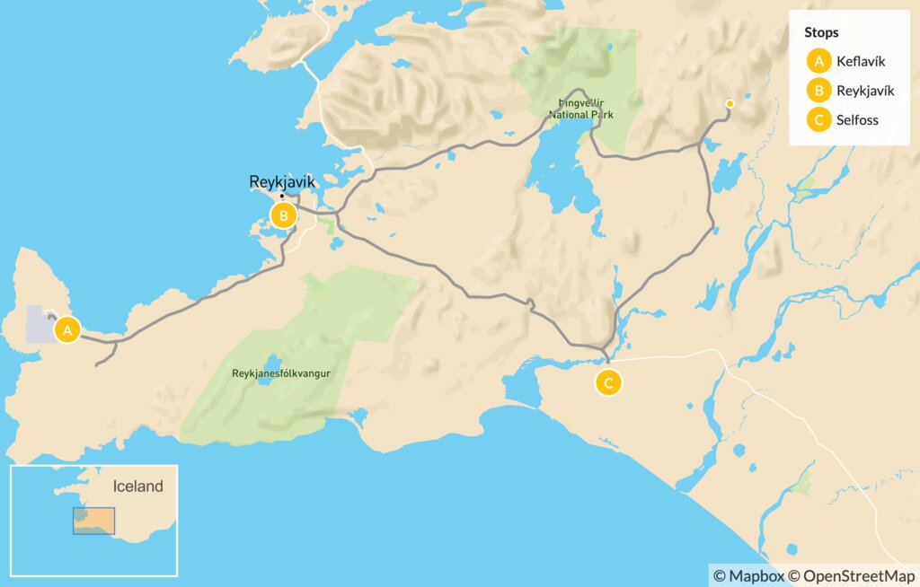 Map of Luxury Icelandic Spa Retreat: Reykjavík & the Golden Circle – 7 Days