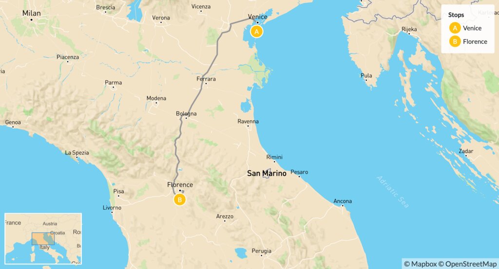 Map of Luxury Italian Highlights: Venice & Florence – 5 Days