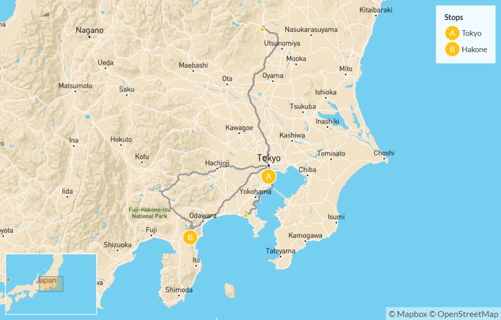 Map of Luxury Japan Getaway: Lively Tokyo & Tranquil Hakone – 7 Days