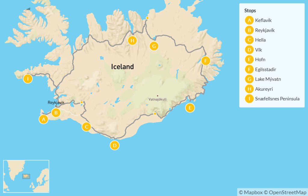 Map of Luxury Journey Around Iceland’s Ring Road – 10 Days