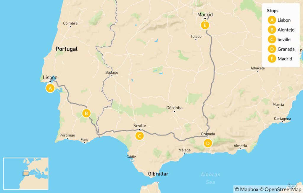 Map of Luxury Journey Through Portugal & Spain: Culture, Countryside & Gastronomy – 10 Days