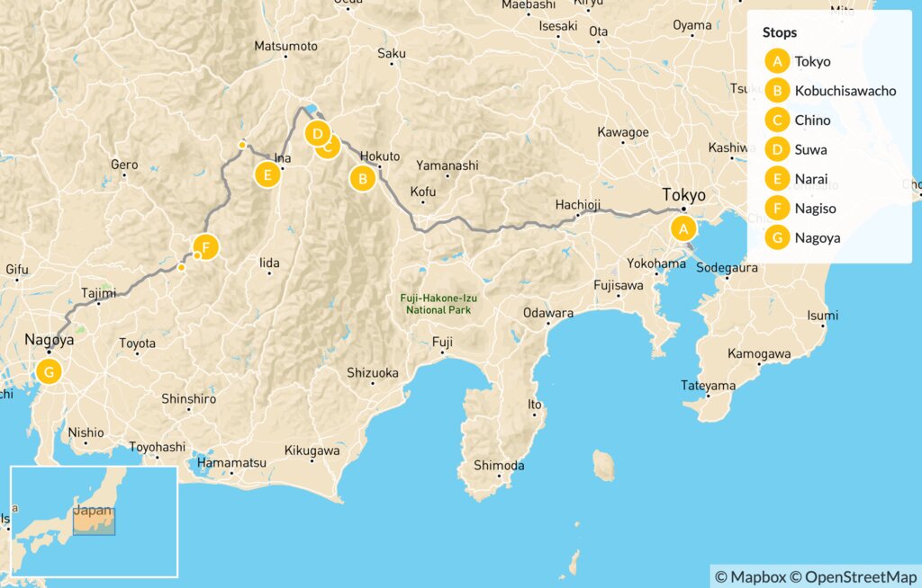 Depart Suwa this morning and hop aboard the train to Narai, a journey of approximately two hours. This historic town makes the halfway point of Japan’s famed Nakasendo Trail. Once the wealthiest post town of the Kiso Valley, Narai features more wooden houses than other post towns, many of which have been preserved to look just as they did during the Edo Period.