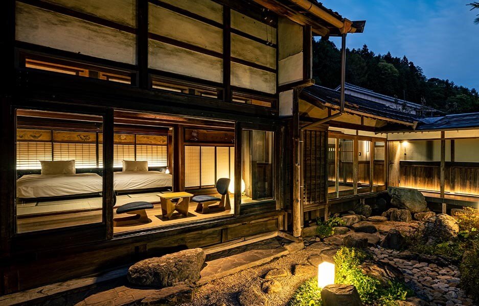 Arrive and check in at Byaku Narai, a luxury ryokan created from four distinct historic buildings, including the former Suginomori Shuzo saké brewery, founded in 1793 and considered a symbol of Narai. Each of the 16 guest rooms are carefully appointed, drawing from the individual building’s original design, with distinctive floor plans. Additionally, there’s an on-site restaurant and bar, as well as a large public bath.