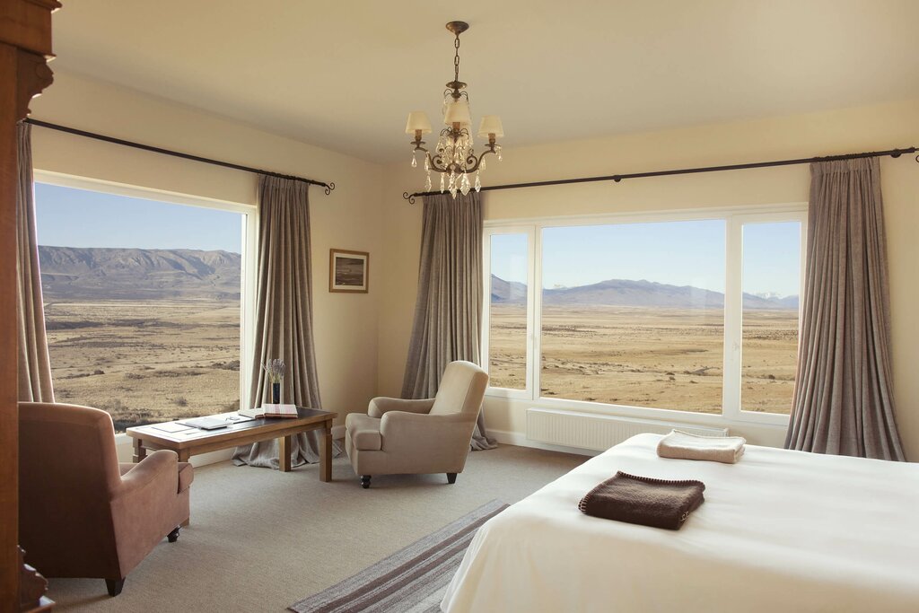 Upon arrival at the airport, your driver will transfer you west of town to EOLO. Also known as “Patagonia’s Spirit,” this 4-star ranch-style accommodation enjoys a privileged location on the wild Patagonian frontier. EOLO is the place to come to experience Patagonia in a secluded setting, as it focuses on understated luxury and excursions/adventures into the surrounding wilderness. Rugged country aside, guests here can enjoy gourmet dining amid panoramic views and sublimely restful sleep in elegant rooms decorated with antique furniture.