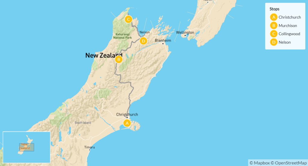 | Day 6 | Drive to Nelson, Abel Tasman Sailing Trip | Nelson |