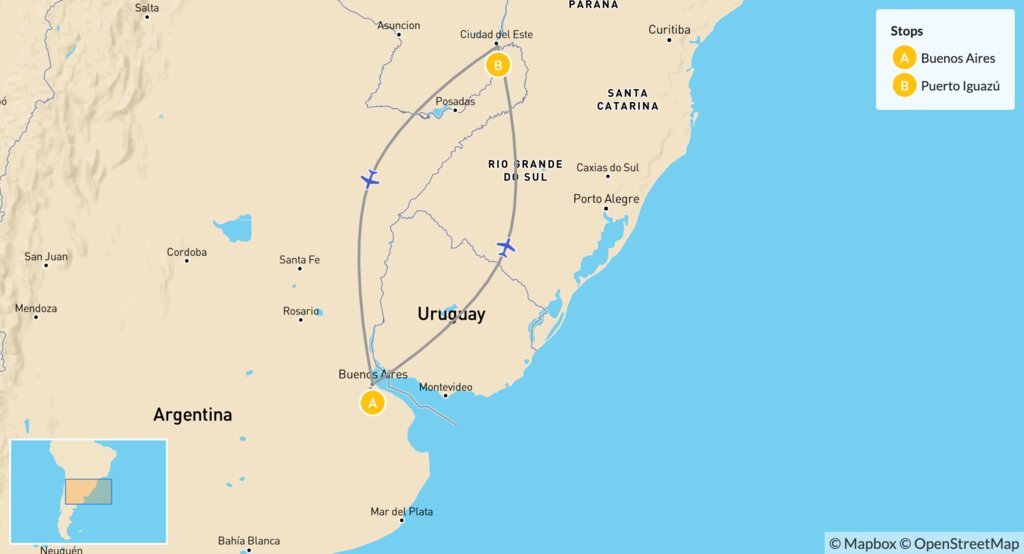 Map of Luxury Northern Argentina: Buenos Aires & Iguazú – 7 Days