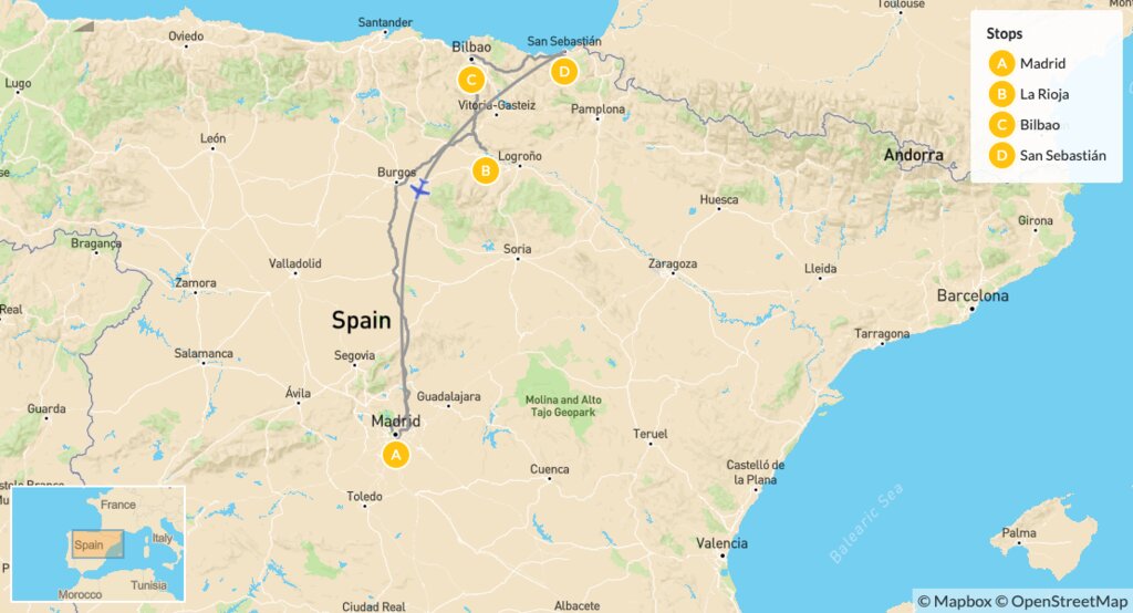 Map of Luxury Northern Spain Road Trip: Madrid, La Rioja & Basque Country – 10 Days
