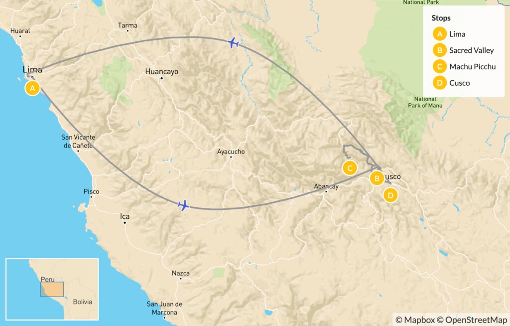 Map of Luxury Peru Culture & Foodie Adventure – 10 Days