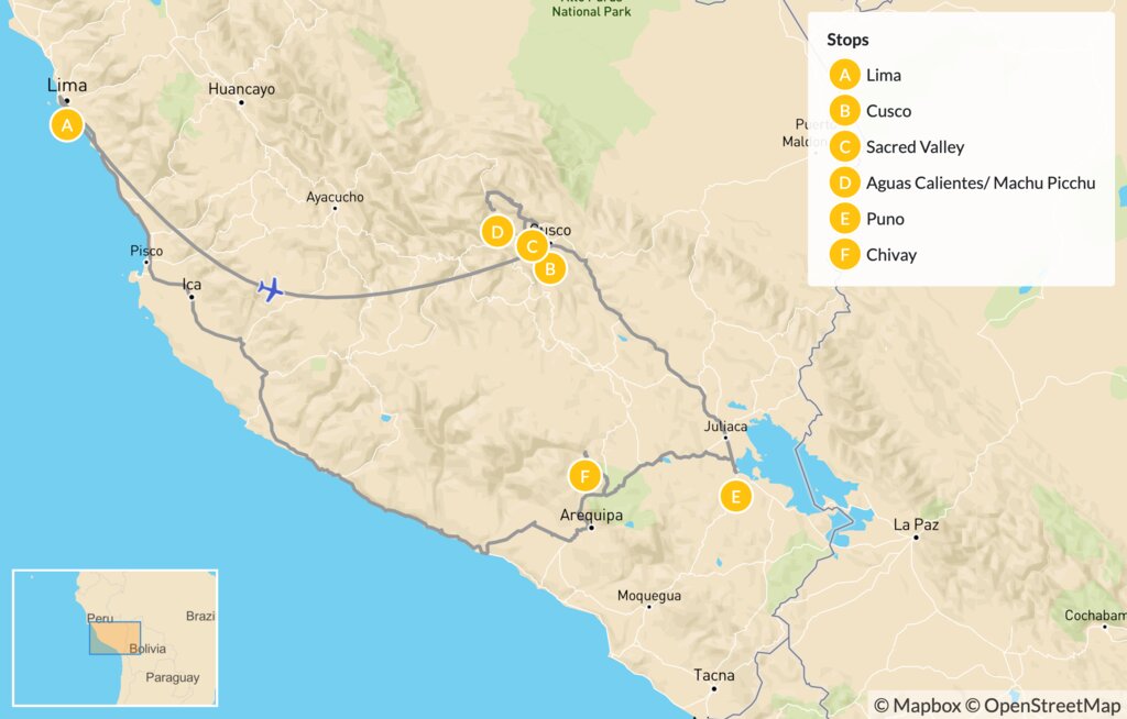 Map of Luxury Peru Train Adventure: Cusco, Machu Picchu & Lake Titicaca – 7 Days
