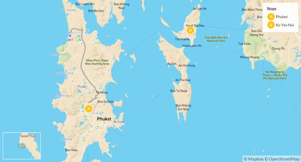 Map of Luxury Phuket & Ko Yao Noi Beach Getaway – 7 Days