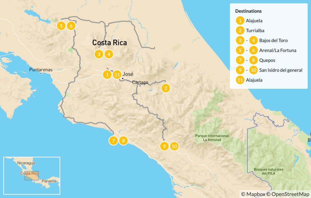 Map of Luxury Spas and Outdoor Adventures in Costa Rica – 12 Days