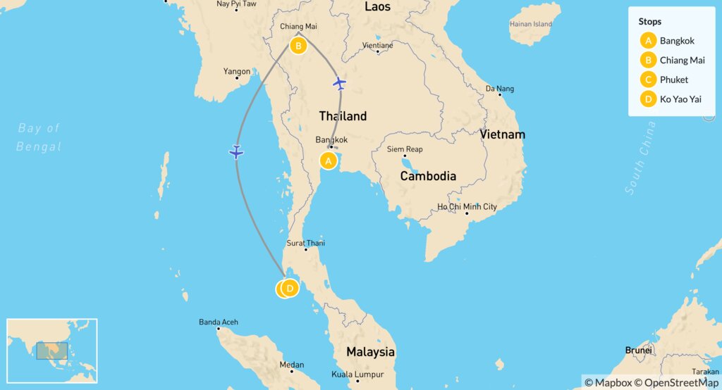 Map of Luxury Thailand Cultural Journey – 14 Days
