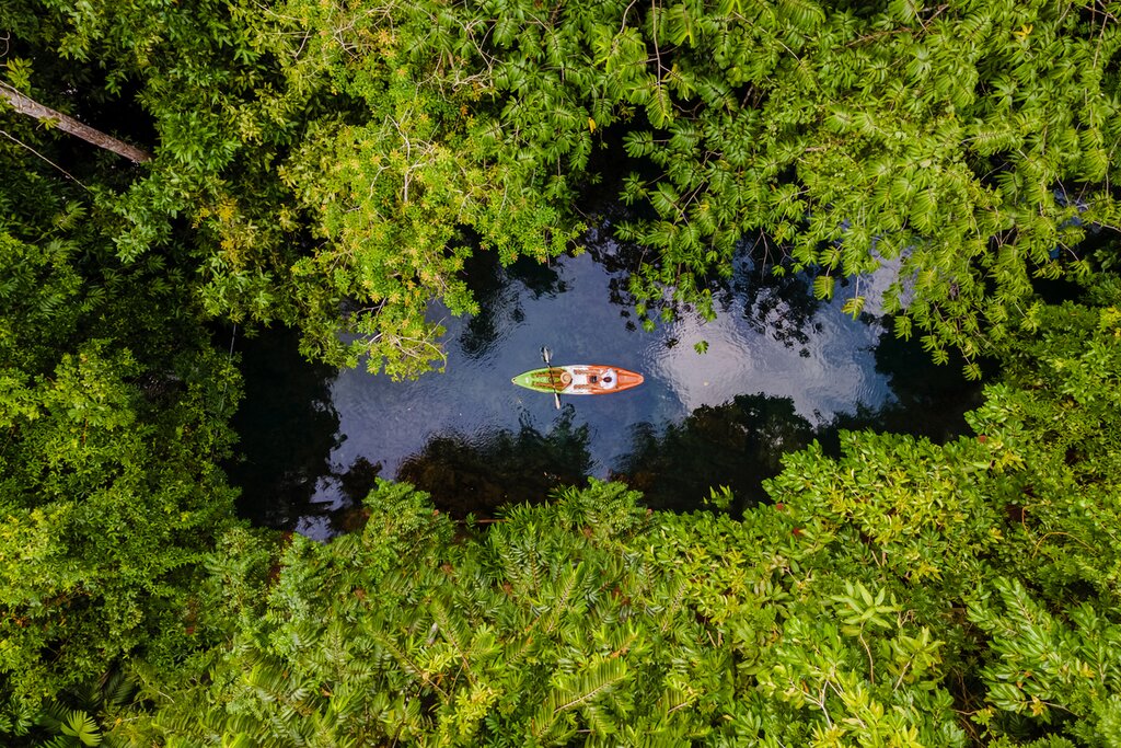 Today you’ll embark upon a private kayaking tour through Khao Lak’s dense mangroves. Travel by long-tail boat to the floating base camp, where you’ll hop aboard a kayak and follow your guide through a tangle of snaking mangrove forests inhabited by monkeys, otters, and rainbow-colored birds.
