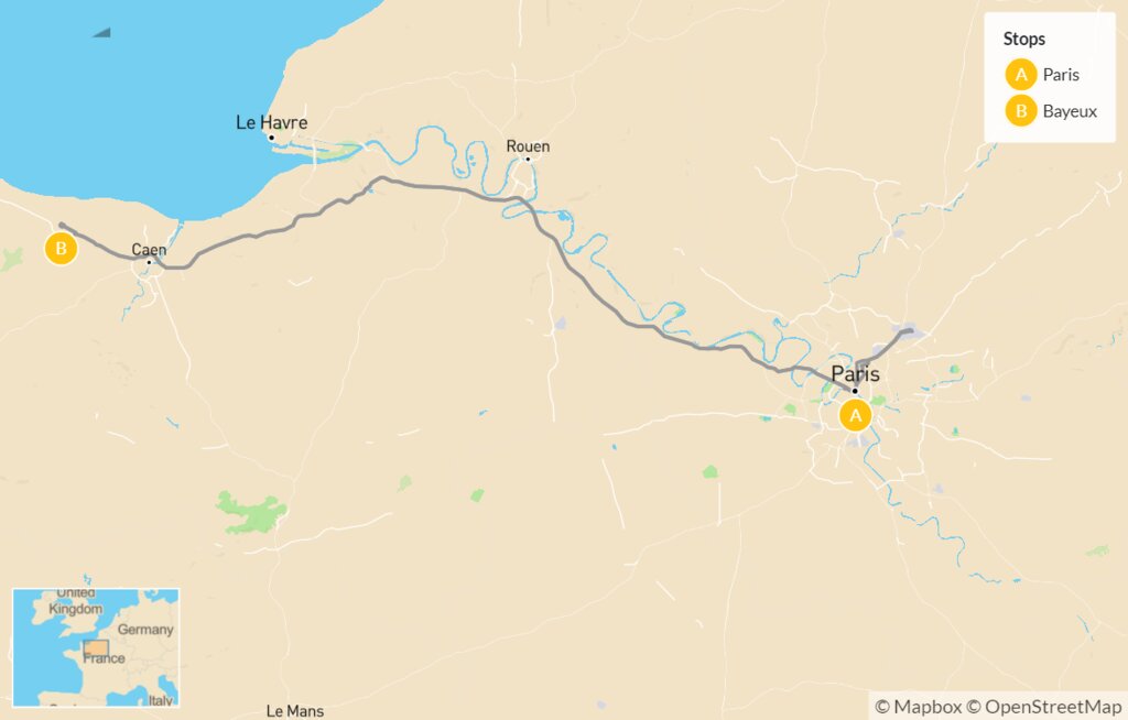Map of Luxury Tour of Historic Paris & Normandy – 8 Days