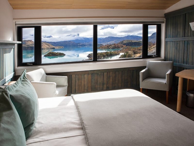 Upon arrival in the park, you’ll check into the Explora Torres del Paine, a 5-star luxury wilderness lodge set amid breathtaking scenery, including Lago Pehoé and the iconic Paine massif. This chic hotel (it opened in 2007) features a modern design that blends with the natural scenery, which complements Explora’s commitment to sustainable tourism. Each class of room has wide windows offering park views, and the on-site gourmet restaurant serves locally sourced cuisine paired with fine Chilean wines.