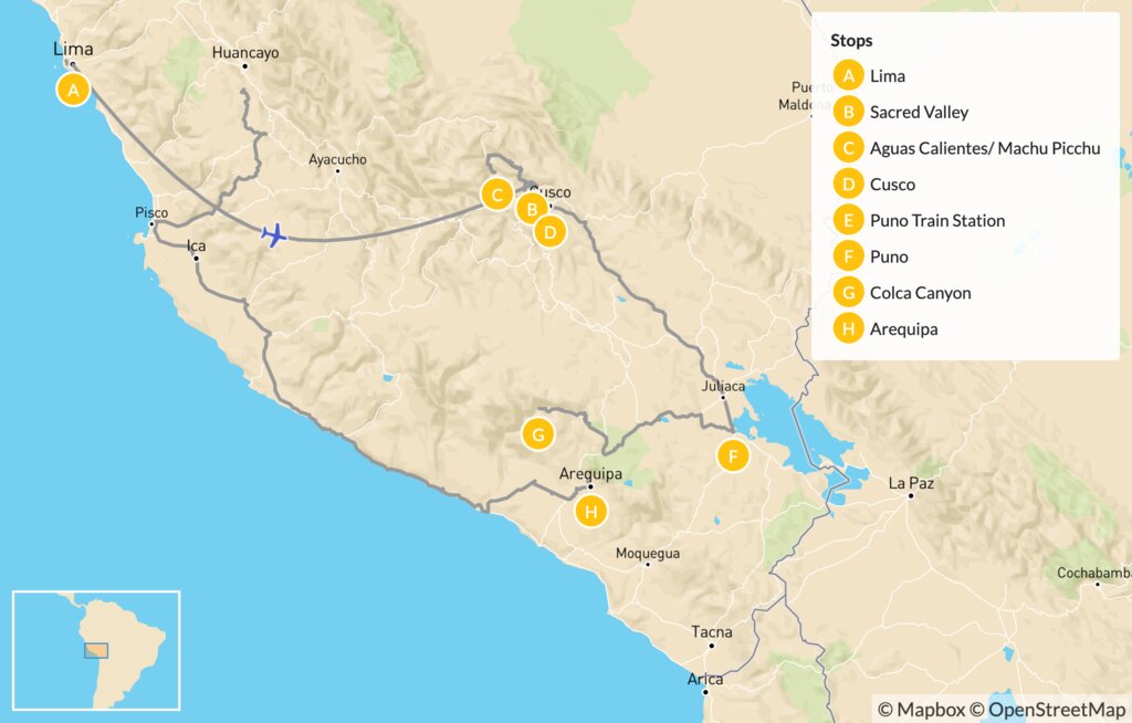 Map of Luxury Train Journey to Machu Picchu & Southern Peru – 14 Days