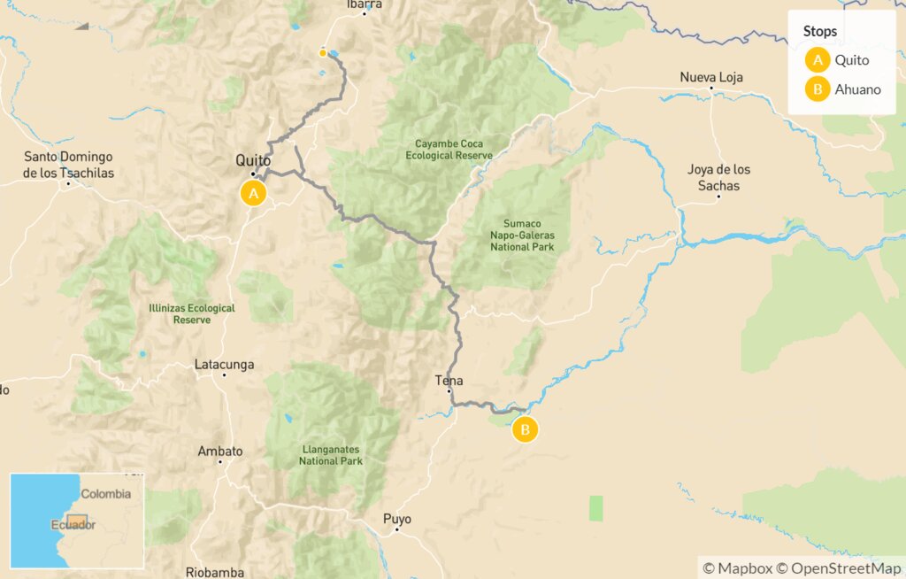 Map of Luxury Trip Through Ecuador’s Culture & Gastronomy: Quito & the Amazon – 7 Days