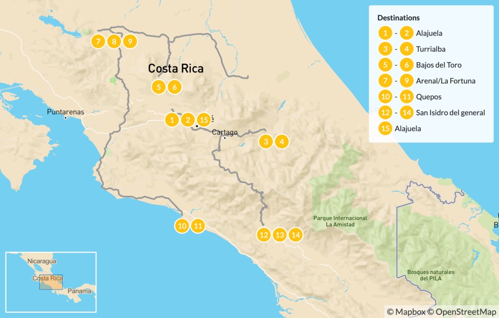 Map of Luxury, Wellness & Adventure in Costa Rica – 16 Days