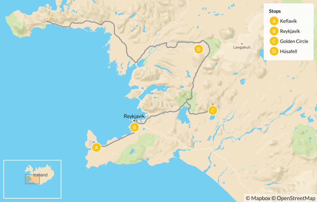 Map of Luxury Winter Adventures & Hot Springs in Iceland – 7 Days