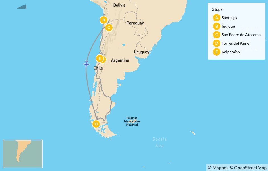 Map of Luxury Wonders of Chile: North to South Grand Tour – 14 Days