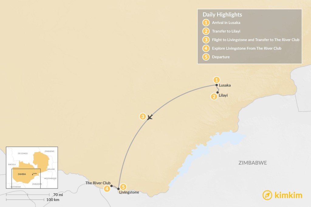 Map of Luxury Zambia Safari & River Camp – 5 Days