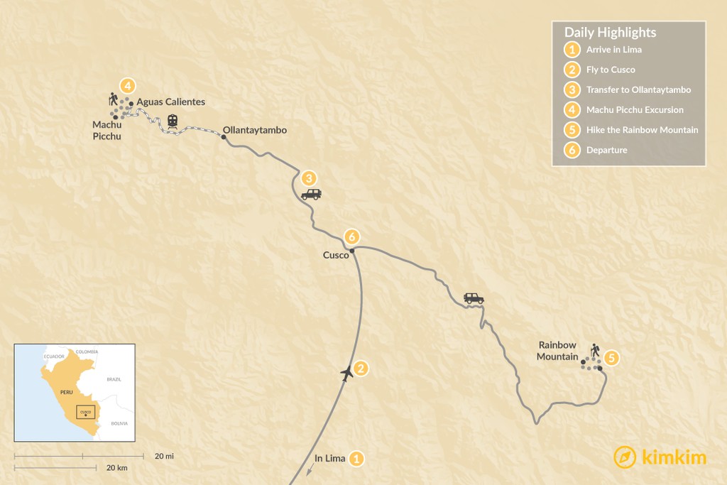 Map of Machu Picchu & Rainbow Mountain Adventure – 6 Days