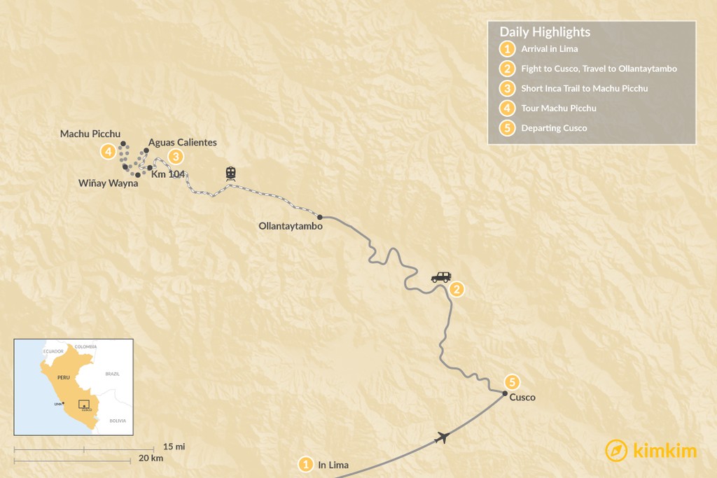 Map of Machu Picchu & Short Inca Trail – 5 Days