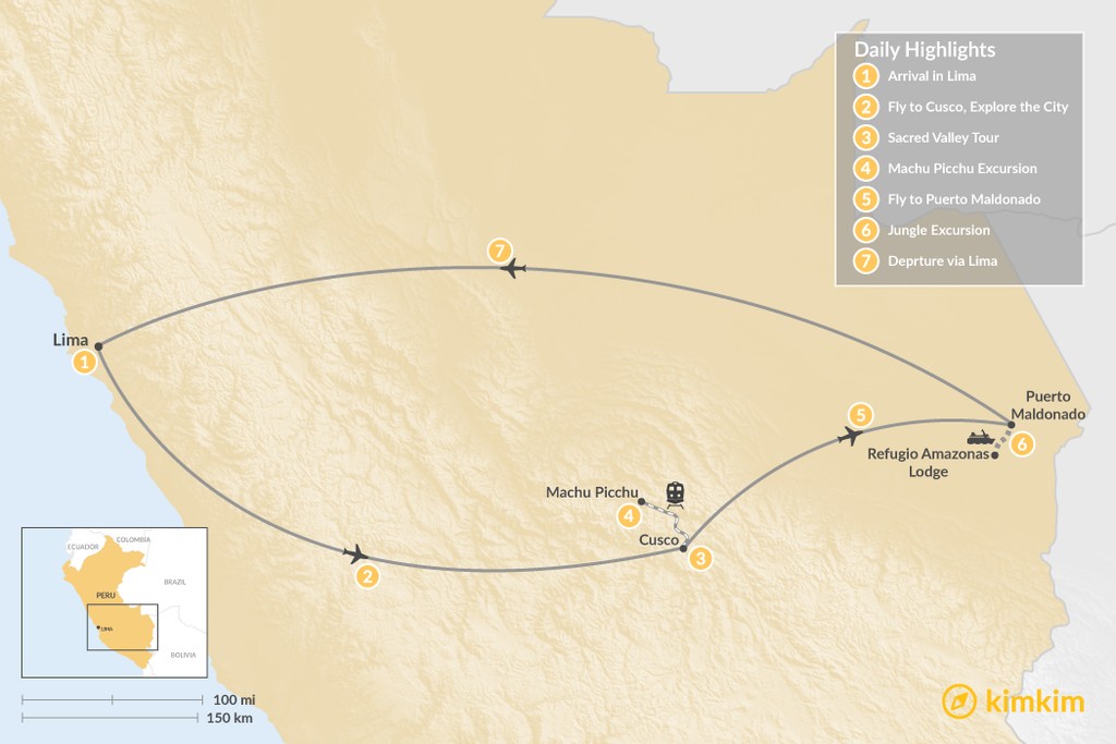 Map of Machu Picchu & the Amazon Jungle – 7 Days