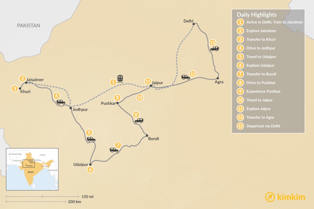 | Day 1 | Delhi sightseeing, train to Jaisalmer | Jaisalmer |