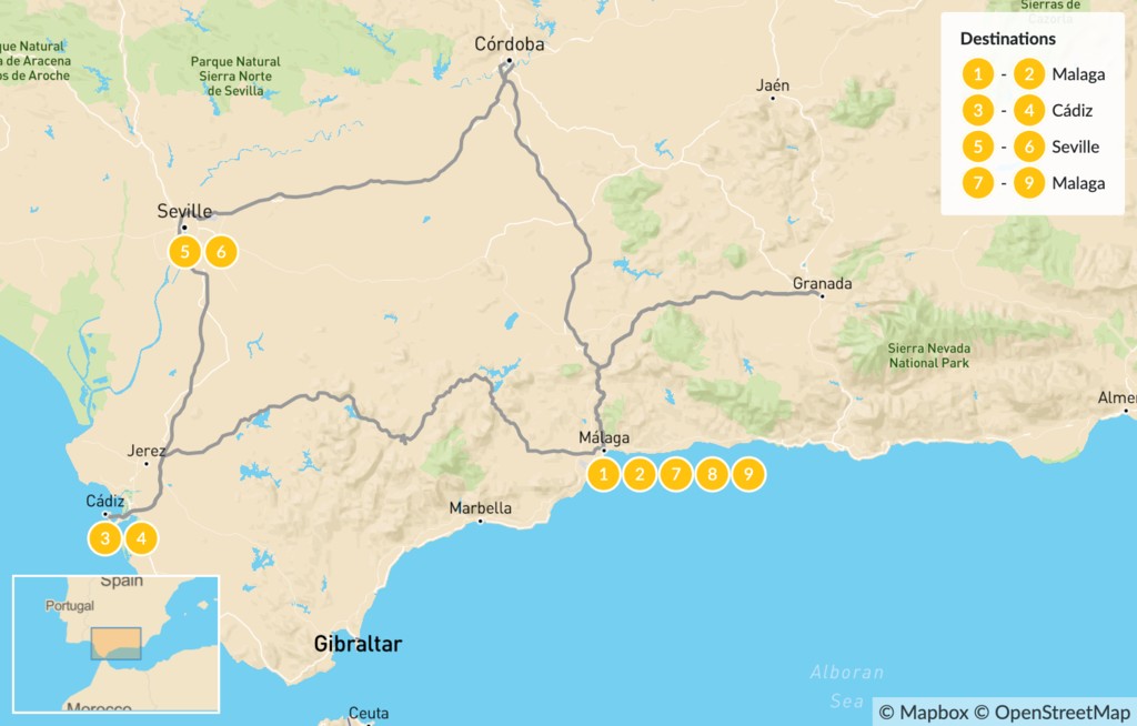 Map of Magic of Southern Spain: History, Beaches, & Culture – 10 Days