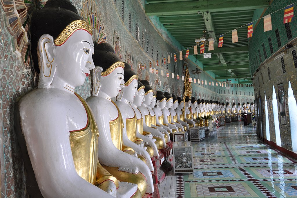 Discover Amarapura, Ava, and Sagaing, starting at Sagaing Hill’s 600 ivory pagodas, 3,000 monks, and nearly 100 meditation shrines. You’ll also visit pagodas such as Swan Oo Pon Nya Shin, U Min Thone Sae and Shwe Taung Oo Maw. Continue to Sagaing’s local market, then head over to a small pottery village and observe the tradesmen hard at work. Next, we go to Ava, the standing capital from the 14th through the 18th centuries. Ferry across the and travel in a traditional horse carriage to the wooden Bagaya Monastery renowned for its elaborate woodcarvings. Be sure to see the Nanmyint Watch Tower, the “Leaning Tower of Ava”.