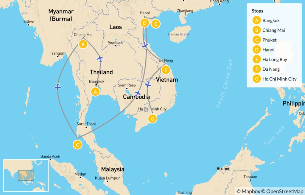 Map of Magnificent Thailand & Vietnam – 14 Days