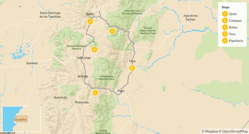 Map of Mainland Ecuador for Families: Andes to the Amazon – 10 Days