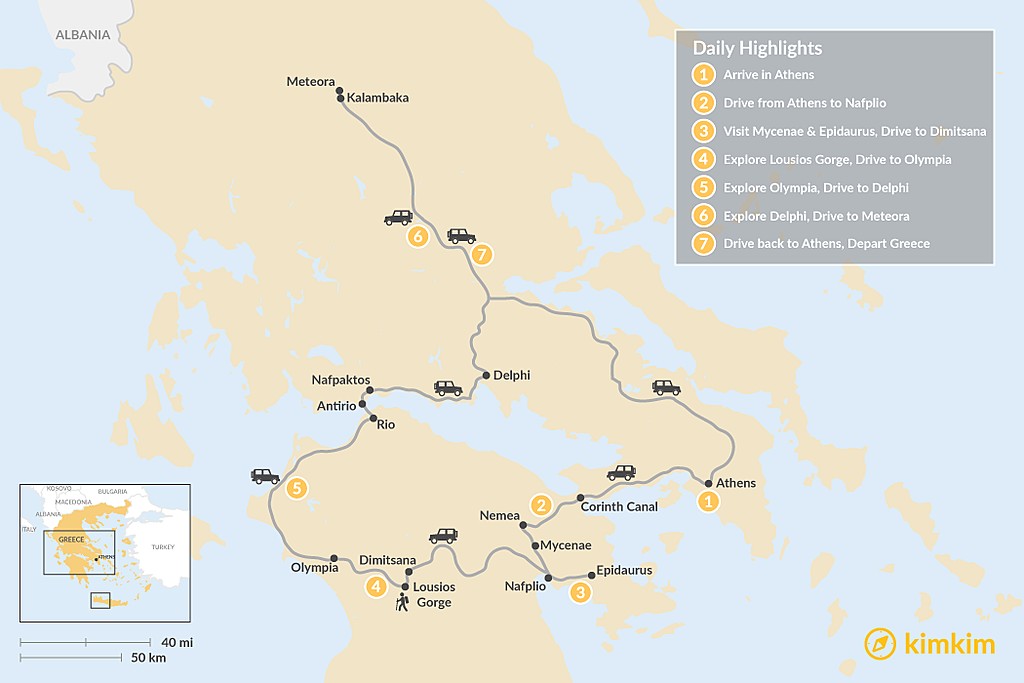| Day 4 | Explore Lousios Gorge, Drive to Olympia | Olympia |