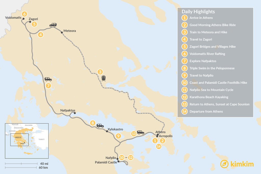 You’ll tackle clifftop monasteries, river rapids, and the southern coastline on this two-week adventure. Start in Athens, where you’ll explore the sights by bicycle. Then make your way to the curious rock formations of Meteora and the picturesque mountain villages of Zagori. After an excursion to the waterfall pools and alpine lakes of the Peloponnese, head to Nafplio for more hiking, biking, and a sea kayaking trip with stunning views.