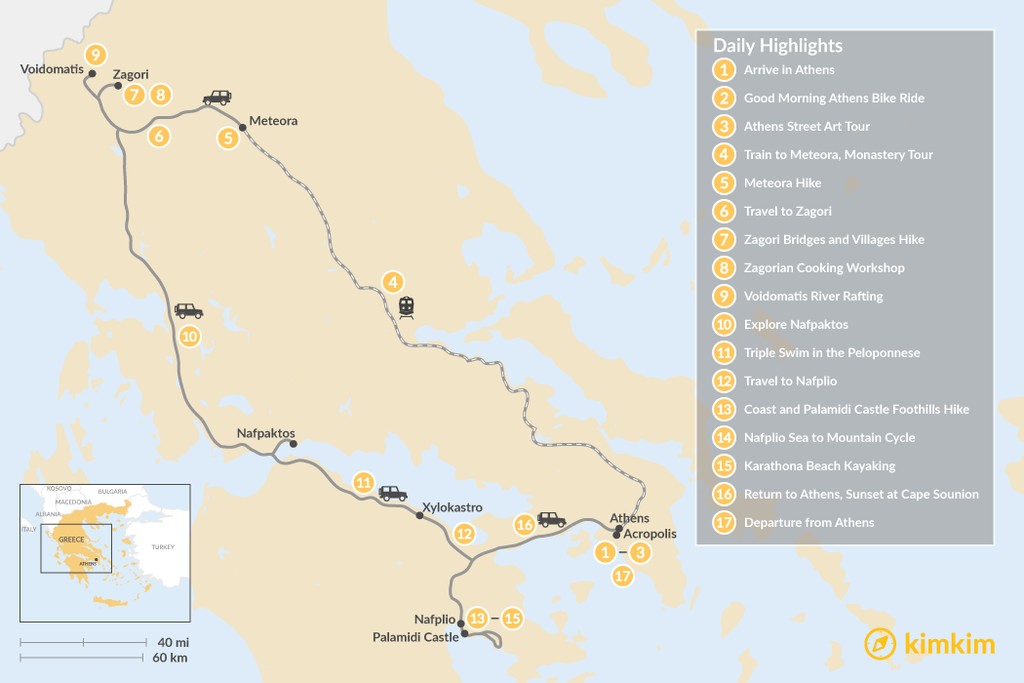 Map of Mainland Greece Adventure Trip – 17 Days