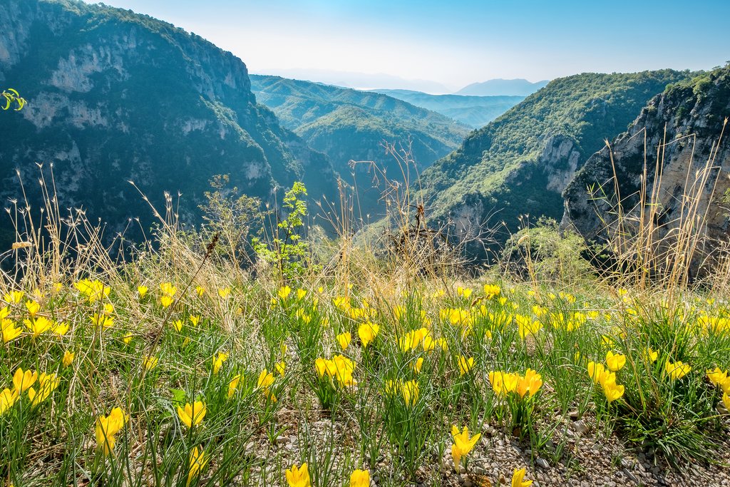 Stop at the sixteenth-century Monastery of Pagia Spiliotissa for some bonus exploring, built atop a rock overlooking the Voidomatis river. The village of Vitsa makes an ideal stop for lunch, especially if you can find the area’s mushroom-hunting expert. Spend the rest of your day resting and enjoying the slow pace of life in this region.
